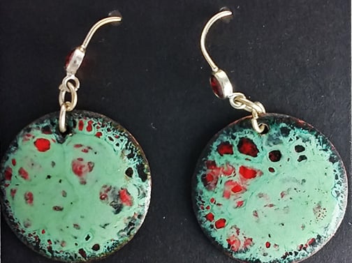 Green and red earrings - Separation enamel with silver wire and cubic zirconia